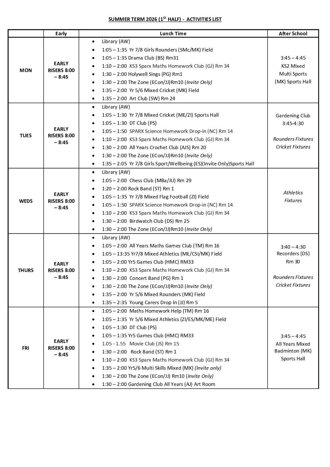 - Clubs and Activities